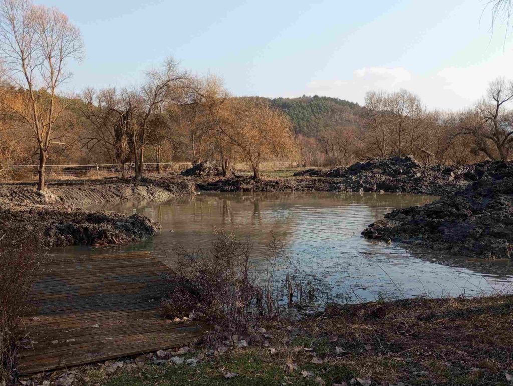• Gábor köré gyűlt csapat elképesztő mennyiségű hatalmas főként korhadt fát vágtak ki és aprítottak fel, biztos vagyok benne, hogy ma alig tudnak mozogni az izomláztól. 🙂 Ezeket a fákat szeretnénk sok férfi erővel hátra szállítani, és tűzifának előkészíteni. Az így kitisztított területeken, egy kis részt leszámítva, ki lett tisztítva a tóba menő patak rész, melyben azonnal megjelent a víz!